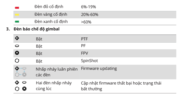- Khi gimbal tắt nguồn, nó sẽ tự động xoay về vị trí gấp.