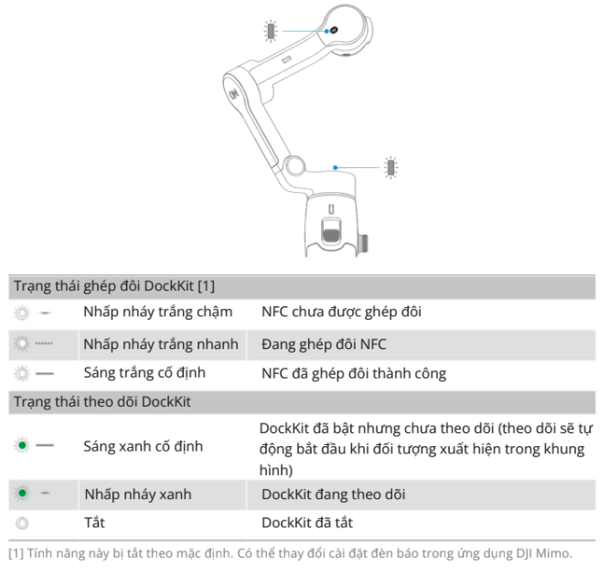- Gimbal sẽ gật nhẹ khi ghép nối thành công