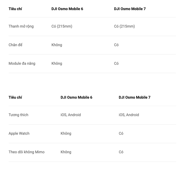 Tóm lại, Osmo Mobile 6 là lựa chọn lý tưởng cho người dùng mới nhờ sự gọn gàng và dễ thao tác, trong khi Osmo Mobile 7 phù hợp hơn với người sáng tạo nội dung chuyên nghiệp muốn mở rộng khả năng quay chụp linh hoạt.