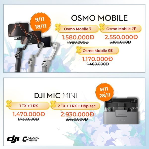 👉 Truy cập ngay DJI Việt Nam by Global Vision để “săn sale, rinh quà” và cùng bùng nổ sáng tạo trong tháng 11 này!