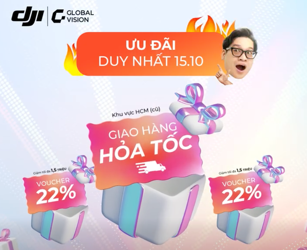 Giữa tháng 10 này, DJI by Global Vision chính thức khởi động đại tiệc sale giữa tháng 15.10 với hàng loạt ưu đãi cực hấp dẫn dành cho cộng đồng yêu công nghệ và đam mê sáng tạo nội dung. Duy nhất trong ngày 15.10, bạn có cơ hội nhận ngay voucher giảm tới 22%, với giá trị lên đến 1,5 triệu đồng, khi mua sắm tại DJI Official Store chính hãng trên Shopee Mall với hơn 86.000 người theo dõi.