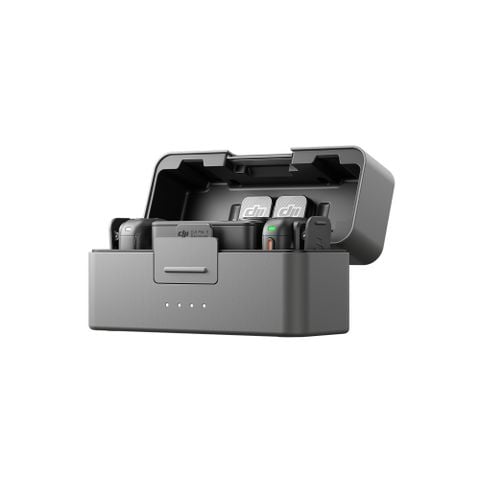 Hộp sạc được thiết kế gọn gàng, chứa vừa hai bộ phát và một bộ thu. Mỗi bộ phát có thể đặt vào bên trong cùng với kính chắn gió và nam châm hoặc kẹp từ tính mà không cần tháo rời. Khi cất bộ phát với kẹp gắn sẵn, phần nắp hộp vẫn có khoảng trống để chứa nam châm và cáp chuyển đổi âm thanh có khóa [1], giúp mọi phụ kiện được sắp xếp ngăn nắp và luôn sẵn sàng sử dụng.